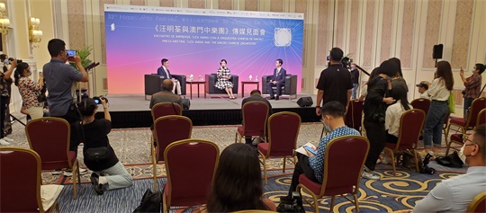 汪明荃和文化局演藝發展廳廳長鄭繼明今(30)日出席於威尼斯人會議室舉行傳媒見面會。汪明荃在見面會上分享了多年以來與中國傳統音樂合作的心得,表示中國傳統樂器更能展現出她聲線的優美,期待與澳門中樂團攜手為樂迷獻上精彩的演出。她並與鄭繼明一起探討如何發揮澳門和香港擁有的中西文化交融的平台作用,進一步與內地、特別是大灣區合作,把中國傳統音樂向全世界推廣、宣揚出去。
