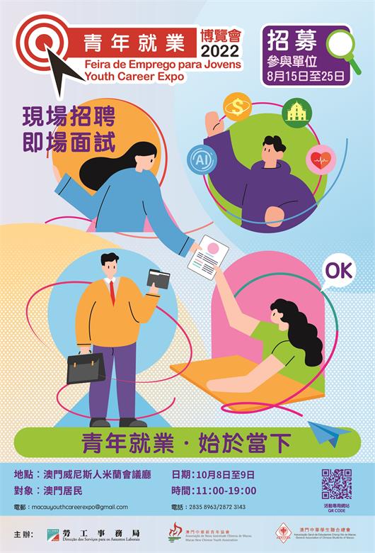 為此,再啟動參展企業招募工作,凡有意為青年提供就業崗位和參展招聘的企業,請於8月25日前登入活動專題網站youthcareerexpo.org.mo遞交申請。凡已保留申請的參展企業毋須再遞交,主辦方會派員確認有關最新招聘需求。除職業配對外,歡迎企業派員主講專題講座,向青年介紹有關行業發展前景,解答有關職涯規劃所遇見的問題,以鼓勵青年投身相關行業,拓寬職涯發展空間。