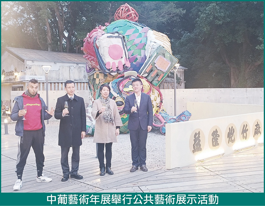 除公共藝術作品外,“中國與葡語國家藝術年展”亦正於氹仔龍環葡韻匯藝廊及風貌館舉行,展出21件繪畫、裝置及錄像等作品,由來自中國內地的周巍和張文心、巴西的EduardoFonseca、安哥拉的Lino Damião及澳門的張凱儀和黎小傑等藝術家創作,展期至2024年1月1日。
