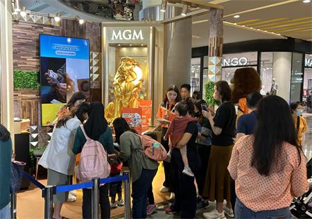 大型路展於雅加達中央公園購物中心(Central Park Mall)舉行。美高梅的展位設計富有東南亞崇尚自然的特色,中央設置以公司的象徵金獅為主題的扭蛋機,而美高梅吉祥物善獅Leo在場與觀眾互動,帶動現場氣氛。觀眾亦踴躍參與扭蛋遊戲,豐富奬品包括美高梅酒店住宿優惠和精美紀念品等。是次送出的住宿優惠附贈輕軌通和美高梅“澳門海上遊”船票,旨在聯乘“文旅+觀光+交通”創意設計的“媽閣CityWalk路線”,推廣澳門多元、深厚的歷史文化底蘊,展示澳門作為世界旅遊休閒中心的實力。