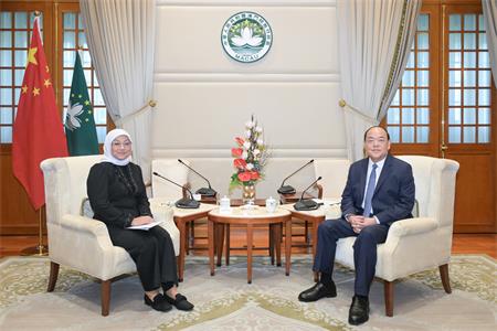 伊達部長表示,很高興與行政長官會面。她指出,印尼與澳門長期以來都保持着良好的互動和溝通。展望未來,雙方將加強交流,特別是在旅遊和勞務等方面,開拓更廣闊的合作空間。她續說,印尼有不少國民來澳工作,大部份從事服務業和家務助理等行業,融入澳門社會,成為促進兩地交流往來的重要元素。她感謝特區政府持續優化外地僱員各方面的保障和工作條件,讓印尼國民安心在澳工作和生活。印尼勞工部將持續加強與澳門勞務部門的交流合作,並與在澳的印尼國民保持緊密聯繫,了解支持他們在澳門工作和生活的情況並提供支援。
