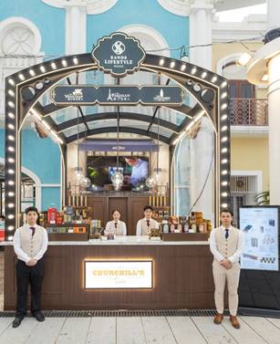 “澳門國際美食之都嘉年華” 共設約100個展位,當中金沙中國的主題展位以純粹英倫風格吸引市民及旅客駐足體驗。展位以澳門倫敦人為藍本,典雅的透明玻璃屋頂設計令人恍如置身於倫敦的車站。展位供應邱吉爾精品店的一系列鹹甜點,當中以最新推出的人氣打卡美食明信片牛角酥最為獨特,蓬鬆的牛角包經過加工手法壓扁後,造型吸睛,口感酥脆,好食又好影。此外還有多款英式酥餅禮盒、咖啡、茶飲及果醬供應。