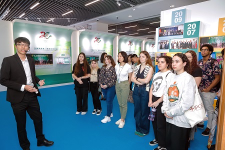 在澳門理工大學學習的葡萄牙交流學生參觀“中國—葡語國家經貿合作論壇(澳門)成立二十周年回顧展”