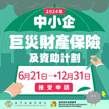 金管局網頁已更新2024年度巨災保險的內容、獲許可提供保險的公司名單,以及資助計劃詳情(https://www.amcm.gov.mo/zh-hant/about-amcm/about-amcm-typhoon-information?type=SME-Catastrophe-Property-Insurance-and-Subsidy-Scheme )。商戶如對“巨災保險”有任何查詢,可直接聯絡相關保險公司,亦歡迎於辦公時間透過下列途徑查詢: