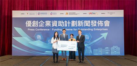 在徐建、經科局科技廳廳長陳祖榮共同見證下,盧敬恆向澳大創科有限公司董事梁麗嫻致送支票,新濠博亞娛樂有限公司向“優創企業資助計劃”提供150萬澳門元的初創資助。5間獲資助的初創公司均透過澳大孵化,分別是:澳門芝寶健康科技有限公司ヽ塵心健康科技有限公司ヽ澳門合安香療應用研究院有限公司ヽ澳門雲曠科技有限公司及澳門雲潮未來科技有限公司。