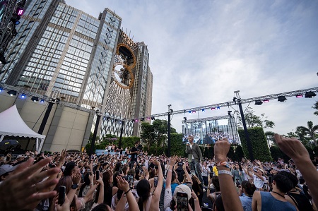 【本報訊】新濠風尚獨家呈獻全澳首個聲浪加激浪戶外水上音樂節WAVEFest,6月22日第一浪於新濠影滙熾熱開演。觀眾對這個嶄新的聲浪加激浪音樂派對非常期待,第一浪的門票在開售後極速售罄。