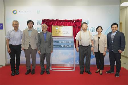 【本報訊】6月27日上午,澳門科技大學醫學部轉化醫學動物實驗室於P27座大堂進行揭牌儀式。出席現場的主要嘉賓包括:澳科大副校長兼臨床試驗中心首席總監、香港科學院院士譚廣亨,澳科大協理副校長兼藥學院院長、歐洲科學與藝術學院院士朱依諄,科大醫院副院長兼大學醫學部總監曾致慧,澳門轉化醫學中心主任何耀,澳科大中藥質量研究國家重點實驗室助理主任黃錦偉。