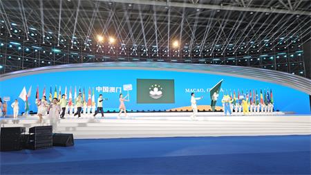 澳門選手代表在開幕式上進場上台
