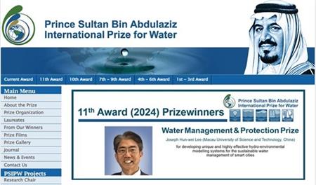 【本報訊】第11屆蘇丹·本·阿卜杜勒阿齊茲親王國際水獎(Prince Sultan Bin Abdulaziz International Prize for Water, PSIPW)於日前在聯合國和平利用外層空間委員會空間與水資源會上宣佈,頒獎典禮則於年底舉行。在來自62個國家和地區,220多個提名中,澳門科技大學校長李行偉講座教授憑藉其領導開發的獨特且高效的水力與環境模擬系統,被廣泛地應用在世界各地水利工程,在實現智慧城市可持續發展方面的卓越貢獻榮獲水資源管理與保護獎(Water Management & Protection Prize)。這是PSIPW自2002年設立以來首次頒發給來自中國大學的學者,其從六個獲獎團隊或個人中,就有三個來自中國大學,成績優異。此外,來自意大利、英國和美國等機構的國際知名科學家和團隊均榮膺殊榮,獲獎者涉及生態水文學、化學、工程學和環境科學等多個領域。