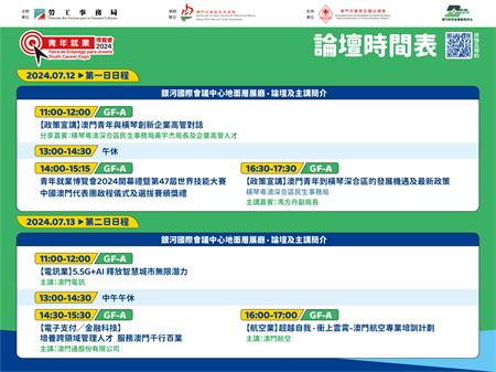 博覽會期間,展廳內設有5場論壇,邀請了深合區民生事務局的領導主管人員、落戶深合區內地龍頭企業的高管人才,與青年對話探索就業新動向,並分享在深合區的發展機遇與相關政策。又邀請了本澳創新企業和公共事業機構的資深人資顧問,為澳門青年介紹企業培養青年人才的相關計劃。此外,又設有16場路演,為青年與參展企業和機構之間搭建溝通平台。