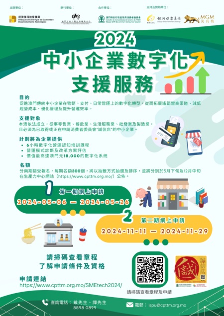 今年的“2024中小企業數字化支援服務”名額增加至600個,將協助社區內更多行業的商戶實現數字化轉型、智能化升級,第一期已於5月開展,第二期將於11月接受申請。
