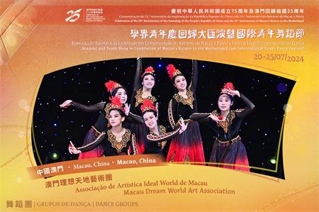 “學界青年慶回歸大匯演暨國際青年舞蹈節”將於7月20至25日盛大舉行,雲集澳門學界師生和世界各地青年合共近1,500位表演者,以及400多位志願者參與,當中匯聚戲劇、歌舞、京劇、粵曲、武術、多媒體影音效果等元素的重頭節目 — “學界青年慶回歸大匯演”,獲得超過700位澳門師生和大灣區青年參與,而“國際青年舞蹈節”則包括來自澳門及世界各地35支舞蹈團,合共750名的年輕舞蹈精英,上演連場精彩的巡遊演出、快閃演出、藝能展現工作坊和戶外演出等。