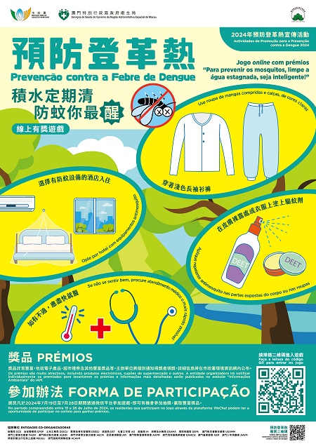 【本報訊】為進一步加強居民於外出及外遊時須注意防蚊,預防登革熱工作小組於七月十九日至七月二十八日期間舉辦第二階段“積水定期清 防蚊你最醒”線上有獎遊戲,期望透過遊戲方式,推動居民做好戶外時的各項防蚊措施。