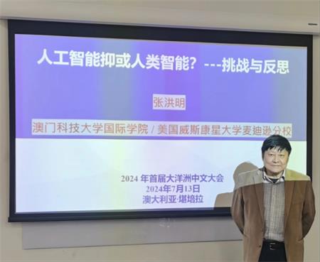 【本報訊】7月13-14日,澳門科技大學國際學院院長張洪明講座教授出席了在堪培拉澳大利亞國立大學舉辦的“2024年首屆大洋洲中文大會”。本屆大會以“團結與發展:以中文學習和教學提升大洋洲各國間連接與合作”為主題,由澳大利亞中文教育聯合會主辦,澳大利亞首都地區中文教師協會和澳大利亞標準中文學校共同承辦,澳大利亞國立大學亞太研究學院支持資助。與會代表除了大洋洲地區的國家,還有亞洲大中華地區和北美,包括教育主管部門和教育機構負責人、國際語言文化機構和國際組織負責人、知名中文教育專家、當地政要以及駐澳使節等。中國駐澳大利亞特命全權大使肖千、澳大利亞聯邦參議員Caty Gallagher、聯邦獨立參議員David Pocock、聯邦眾議員Alicia Payne、Sam Lim、澳大利亞首都地區多元文化部長Mick Gentleman MLA、影子多元文化部長Peter Cain MLA、首都綠黨多元文化發言人Andrew Braddock MLA、澳大利亞印度理事會副主席KantilalJanna、澳大利亞國立大學校長Genevieve Bell教授、世界漢語教學學會會長鍾英華等出席本次大會並致辭。