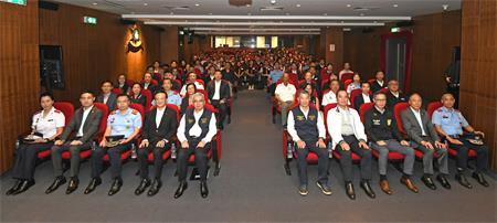 保安司司長黃少澤致辭時表示,為建立“政府主導、社會多元參與、市民積極配合”的現代民防模式,警察總局今年再次開展民防志願者招募工作,讓熱心市民在訓練有素及充分保障的情況下參與本澳民防工作,實現全社會共同預防及應對突發公共事件的目標。他同時感謝社區民防聯絡機制社團及機構對澳門民防工作的支持和協助,並希望各公共部門、私人機構及民防志願者繼續精誠合作,共同應對未來可能出現的極端天氣。