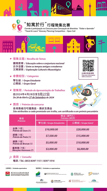 有興趣人士可透過旅遊局網頁https://ep.macaotourism.gov.mo/educational-tour-itinerary-contest-2024瀏覽活動章程和報名。