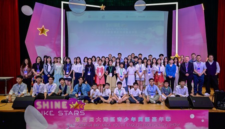 第三屆Shine Like Stars得獎者與馬裕玲廳長、梁麗珊主任、Mr. Jonathan Mackay及一眾嘉賓評委大合照