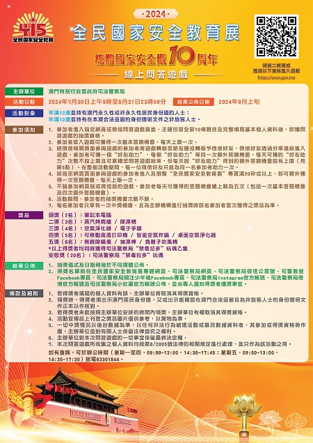 司警局舉辦“2024全民國家安全教育展線上問答遊戲”