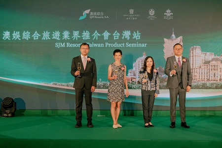 一眾主禮嘉賓為澳娛綜合旅遊業界推介會(台灣站)拉開帷幕