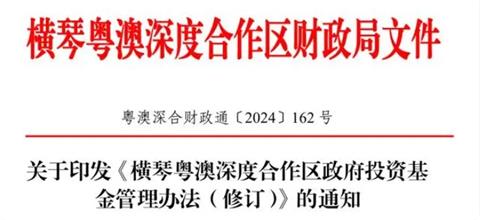 橫琴粵澳深度合作區政府投資基金管理辦法(修訂)