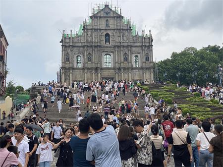 下半年,得益於暑假外遊旺季,7月至今澳門入境旅客數字亮眼。踏入暑假,各區旅遊景點及場所人流暢旺。根據臨時數據,今年7月1至25日日均旅客近9.6萬人次,當中7月20日訪澳旅客錄得逾13.5萬人次,是目前7月份錄得最高的單日入境旅客量。