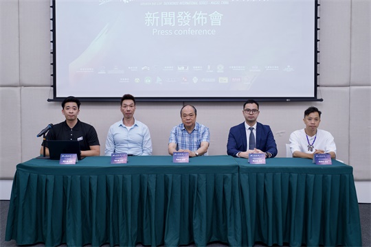 新聞發佈會今(21)日假澳門青年創業孵化中心舉行,澳門旅遊局商務旅遊及活動處處長陳志輝,澳門跆拳道俱樂部理事長盧逸銘、副理事長馮兆權,MR.J 體育會理事長趙文龍,賽事組委會榮譽主席黃偉沛出席。