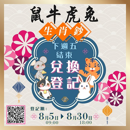 鼠年、牛年、虎年及兔年生肖鈔兌換登記下週五(8月30日)結束