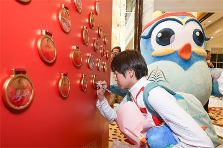 今日下午,銀娛在“銀河酒店”大堂為奧運健兒代表團舉辦簡單而隆重的歡迎儀式,熱情接待代表團入住。當中,澳門特區政府體育局代局長張子軒先生以及代副局長李詩靈女士;銀娛副主席呂耀東先生、董事程裕昇先生以及企業事務董事林志成先生在現場迎接,逐一向每位代表予以誠摯的歡迎。期間,多位運動員在銀娛特意製作的獎牌牆留下親筆簽名,並接受由澳門弱智人士家長協進會成員為奧運健兒用心製作的歡迎花束,以及深受旅客歡迎的“童”在銀河的孔雀“小淘淘”紀念品。此外,銀娛亦於歡迎儀式上特別安排冠名贊助多年之“銀娛澳門盃— 青少年國情知識競賽”的多名參賽師生到場列隊歡迎,不僅讓其近距離目睹多名奧運健兒的風采,更能從中提升社區體育氛圍以及對國家的自豪感;冀透過訪澳活動連結本澳不同社群,共同感受奧運健兒的風采。
