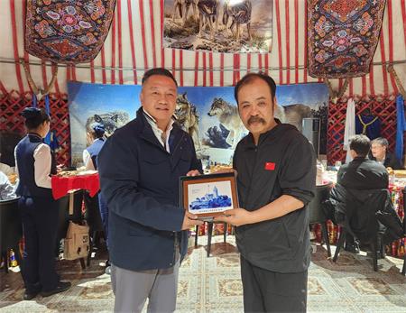 圖片說明:HHE0903澳門記協副會長龔永興(左)向陳志峰致送紀念品;HHF0903澳門團員向汗血馬餵食。