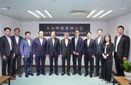 【本報訊】96日下午三時,第六任行政長官參選人岑浩輝在代理人李煥江、競選辦公室主任葉兆佳、副主任陳家良等陪同下,在南通商業大廈的競選辦公室會見澳門廠商聯合會會長崔煜林、理事長馮信堅等一行七人,就澳門工業的發展現狀、面臨的挑戰及未來機遇進行深入交流。參選人岑浩輝對廠商聯合會的來訪表示歡迎,認真聽取了他們的意見和建議。