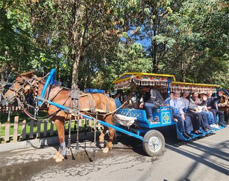 参访团乘坐马车游览喀赞其民俗旅游区