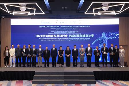 【本報訊】適逢今年是中華人民共和國成立75周年、澳門特別行政區成立25周年、中葡建交45周年,由體育局主辦,北京體育大學、葡萄牙里斯本大學人體動力學學院、澳門體育暨運動科學學會、中國澳門體育暨奥林匹克委員會協辦,由澳娛綜合渡假股份有限公司贊助的“2024中葡體育科學研討會 - 足球科學訓練與比賽”今(8)日 在澳門旅遊塔會展娛樂中心舉行,吸引本澳及國內外的教練員、運動員及體育工作者約150人參加。