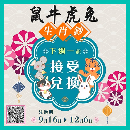 鼠年、牛年、虎年及兔年生肖鈔 下週一(9月16日)起接受兌換