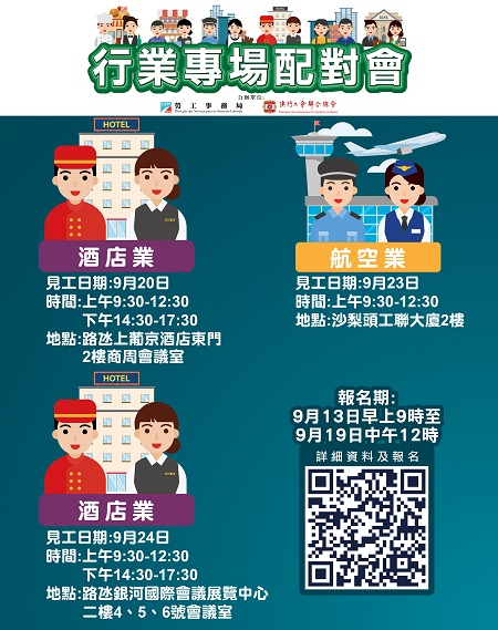勞工局9月下旬舉辦3場配對會