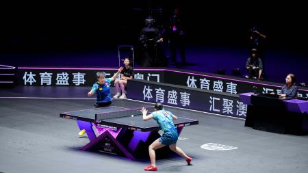 【本報訊】由體育局、世界乒乓球職業大聯盟(WTT)及銀河娛樂集團主辦、澳門乒乓總會協辦的“WTT澳門冠軍賽2024由銀河娛樂集團呈獻”,今(15)日晚上7時於澳門東亞運動會體育館上演巔峰對決,女單后冠由中國孫穎莎與中國王藝迪爭奪,接著由中國林詩棟與德國邱黨爭奪男子單打王者寶座。