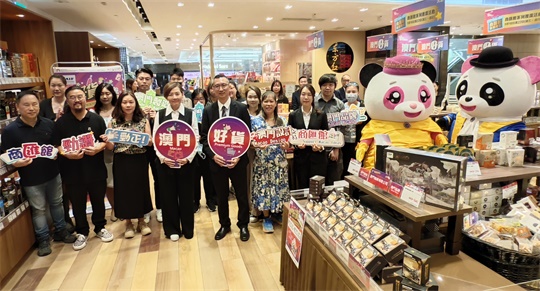招商投資促進局委員梁華峰和澳門旅遊娛樂股份有限公司零售業務總監暨新八佰伴主管楊寶莉,主禮今(19)日上午在澳門新八佰伴七樓超市舉行的“澳門好貨”商匯館展銷專場啟動儀式。