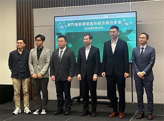 【本報訊】由澳門生產力暨科技轉移中心及澳門餐飲行業協會合辦、澳門特別行政區政府經濟及科技發展局支持的“澳門餐飲業智能升級方案分享會”於9月20日下午3時至5時在中葡論壇綜合體舉行,出席的嘉賓有經濟及科技發展局廳長陳祖榮、澳門生產力暨科技轉移中心高級經理林濤、澳門餐飲行業協會會長李蔭良、澳門餐飲行業協會常務副會長林皓賢、金蝶軟件(澳門)有限公司總經理王偉琪。