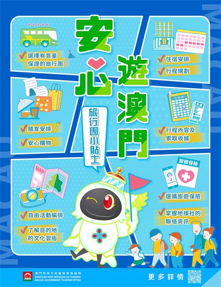 此外,“安心遊澳門”圖文包及宣傳片於旅遊局網站及不同社交平台向旅客宣傳,各旅客詢問處亦備有“安心遊澳門”宣傳單張供給旅客索取。