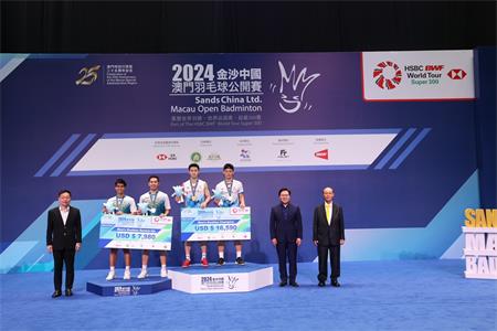 【本報訊】由金沙中國有限公司及澳門羽毛球總會於本年924日至29日在澳門東亞運動會體育館攜手合辦的“2024金沙中國澳門羽毛球公開賽”取得圓滿成功。是次賽事獲澳門體育局全力支持,連續六天為體育愛好者帶來令人熱血沸騰的精彩賽事。經過連場激戰,男子單打、女子單打、男子雙打、女子雙打及混合雙打等五個項目的賽果已順利誕生。