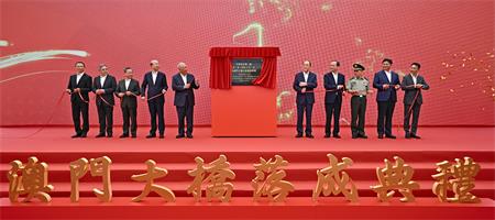 行政長官藉此機會,代表澳門特區政府向中央政府和各部委長期以來的關心支持,向澳門大橋規劃建設過程中各參與單位和全體同仁的辛勞奉獻,致以崇高的敬意和衷心的感謝。