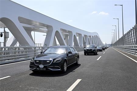 落成典禮結束後,主禮嘉賓乘座駕通過澳門大橋