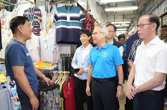 岑浩輝一行先後前往祐漢第四街休憩區、民生商舖、生果街、祐漢小販大樓、街市及熟食中心等地,分別與商舖、攤販、附近街坊及青年交流,了解社區內的各種情況。