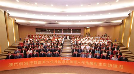 【本報訊】10月8日下午三時,第六任行政長官候選人岑浩輝在代理人李煥江、競選辦公室主任葉兆佳、副主任陳家良等陪同下,到鏡湖慈善會拜訪了鏡湖慈善會主席廖澤雲、理事長劉永誠、監事長胡順謙,並進行座談交流。出席座談的還有黃國勝、何榮標、林金城、蕭志偉、陸永根、劉藝良、吳培娟、吳在權、飛安達、溫能漢、姚鴻明、陳季敏、何凱玲、王彬成、邱漢榮、余健楚等多位鏡湖慈善會負責人。而鏡湖醫院、鏡湖護理學院、鏡平學校負責人以及前線醫務人員代表共200人出席座談會。