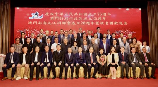 【本報訊】慶祝澳門南海九江同鄉會成立廿八周年暨敬老聯歡晚宴今(9)晚假萬豪軒酒樓舉行,筵開50席,邀本澳、南海區、九江鎮的政府官員、社會賢達,香港南海同鄉會代表,與同鄉會鄉親歡聚一堂,喜樂融融。