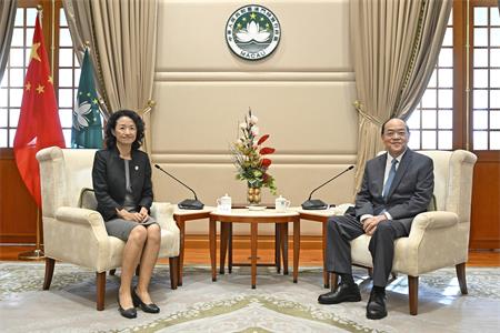 【本報訊】行政長官賀一誠今(10)日在政府總部會見商務部國際貿易談判副代表李詠箑一行,雙方就進一步落實《內地與澳門關於建立更緊密經貿關係的安排》(CEPA)及系列補充協議、推動澳門經濟適度多元發展合作等議題交換意見。