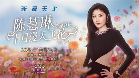 【本報訊】新濠天地再度帶來極緻頂級音樂盛宴,將於10月26日迎來樂壇天后陳慧琳駕臨首屈一指綜合娛樂度假村,呈獻限定一場之陳慧琳新濠尊場《十月漫天飛花》音樂會,以悅耳動人的天籁之音為新濠賓客帶來震撼心弦的專屬演出,在這個彌漫情感氛圍的十月,留下最唯美的秋天回憶。