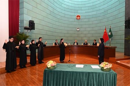 1015日下午330分,於終審及中級法院大樓審判庭舉行就職儀式。上述十五名法官在終審法院代院長宋敏莉主持及監誓下宣誓就職,行政長官賀一誠、推薦法官的獨立委員會主席劉焯華、中級法院院長唐曉峰及第一審法院院長姚頴珊列席主禮台。行政法務司司長、檢察院檢察長、廉政專員、推薦法官的獨立委員會委員、澳門律師公會理事會主席、各級法院法官及檢察官、相關部門領導等嘉賓以及法院眾多職員出席就職儀式。
