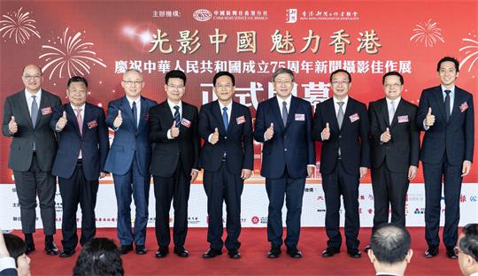 10月24日下午,由香港新聞工作者聯會和中國新聞社香港分社共同主辦、新鴻基地產協辦的“光影中國 魅力香港”慶祝中華人民共和國成立75周年新聞攝影佳作展在“香港天際100”觀景台開幕。