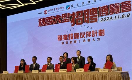 工聯總會副理事長鄺子豐致辭表示,習近平總書記指出“就業是最基本的民生”,並強調“促進高質量充分就業,是新時代新征程就業工作的新定位、新使命”,因此工聯總會於這一次招聘博覽會首次發起並與六間綜合旅遊休閒企業簽署“職業發展與人才培養伙伴計劃”合作協議,共同為行業人才培養、為職工職業發展、為高質量就業創造空間而一同努力,為企業和職工搭建一個更加堅實的橋樑,助力澳門經濟適度多元發展。除此以外,更首次舉辦“職涯多元拓展論壇”,邀請社會精英與業界翹楚分享就業空間的新形態、行業趨勢的新高度、人才培養的新水準以及職業發展新空間,啟發求職者對職業規劃的新思考。