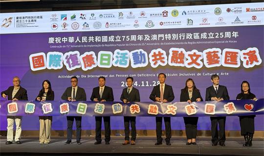 【本報訊】澳門社會工作局聯同6個政府部門、22間民間機構及2間學校,於今(28)日下午假旅遊塔會展娛樂中心4樓大禮堂舉辦“慶祝中華人民共和國成立75周年及澳門特別行政區成立25周年國際復康日活動 - 共融文藝滙演”,以宣揚多元共融、平等參與的訊息,並透過殘疾人士與其他界別人士的藝術才華演出,體現共融社會。